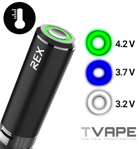 C'est toujours la norme Yocan quand il s'agit d'options de tension vous disposez de 3 préréglages de tension avec le Yocan Rex : 3,2V (blanc), 3,7V (bleu) et 4,2V (vert) Chaque préréglage est accompagné d'un indicateur de couleur correspondant sur le bouton d'alimentation, de sorte que vous n'êtes pas laissé dans le noir lorsqu'il s'agit de commencer vos séances Comme la plupart des autres appareils, le changement de préréglage sur le Yocan Rex nécessite d'appuyer sur le bouton d'alimentation 3 fois de suite.